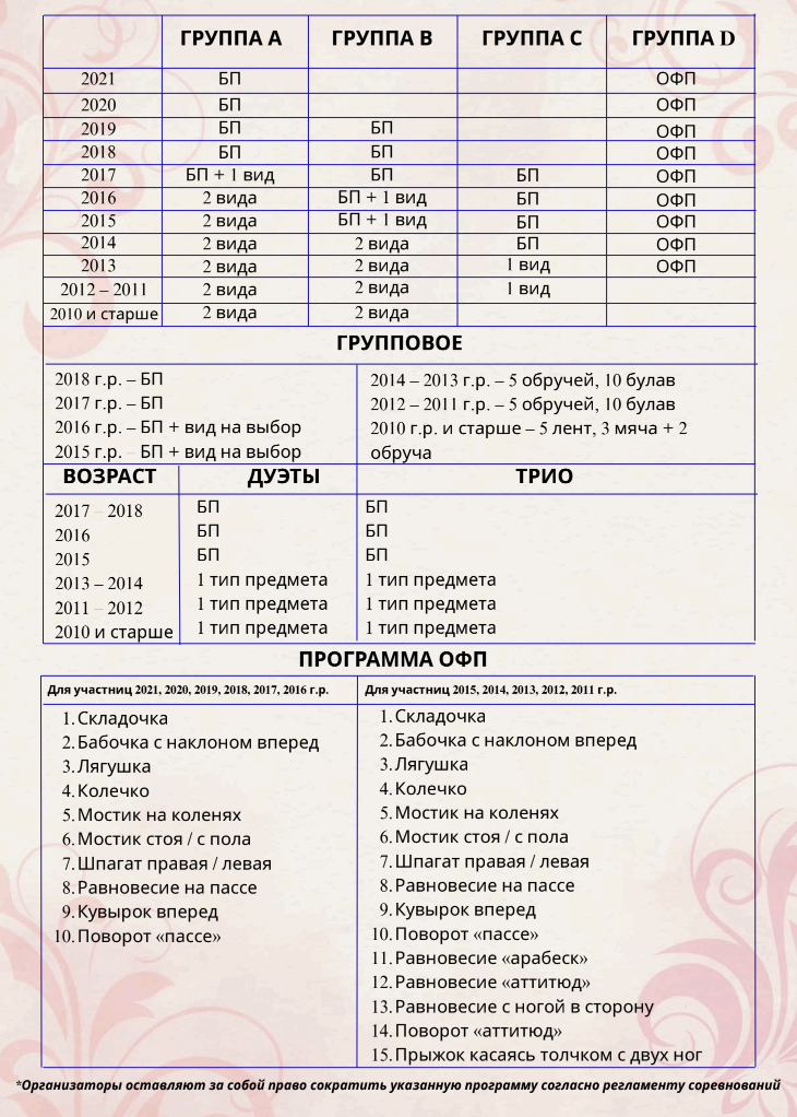 ПРОГРАММА СОРЕВНОВАНИЙ
